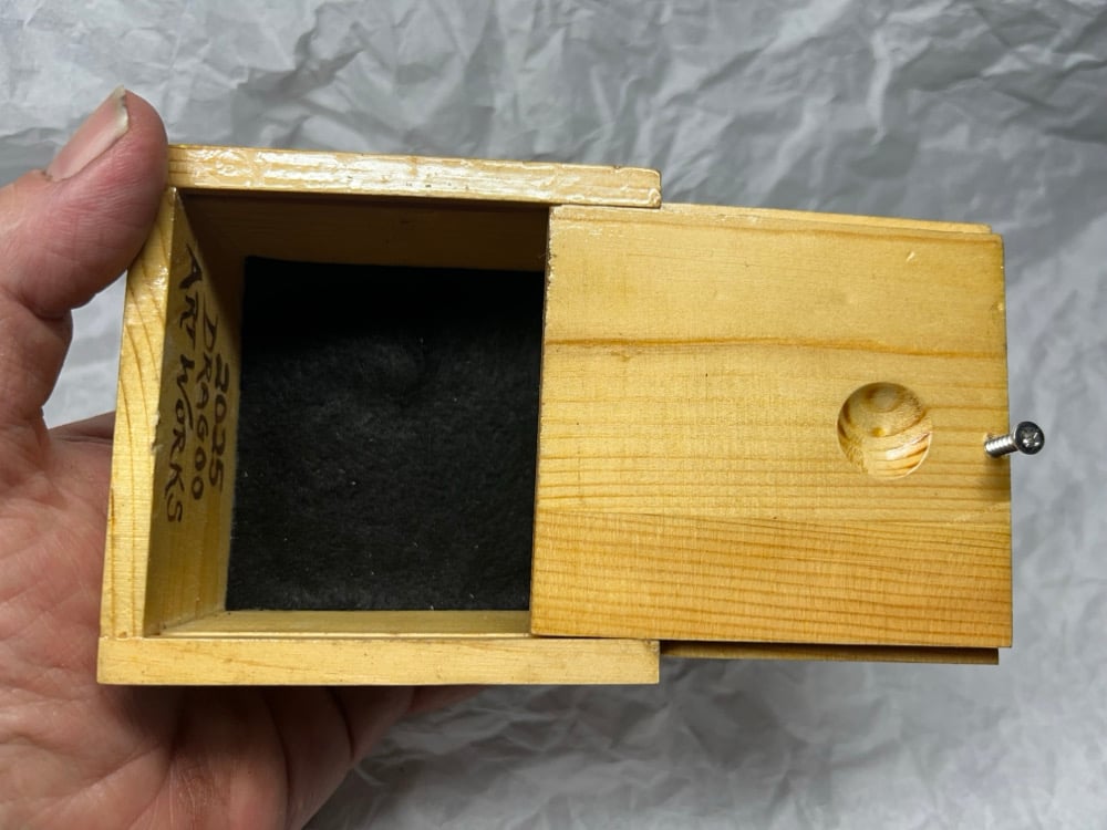 - Made of wood, box measures 3 1/2 x 3 1/2 x 2 inches tall.