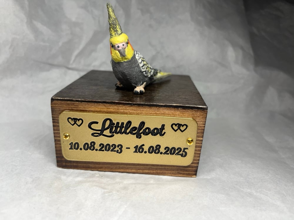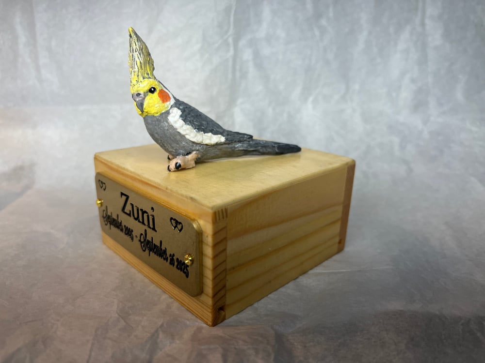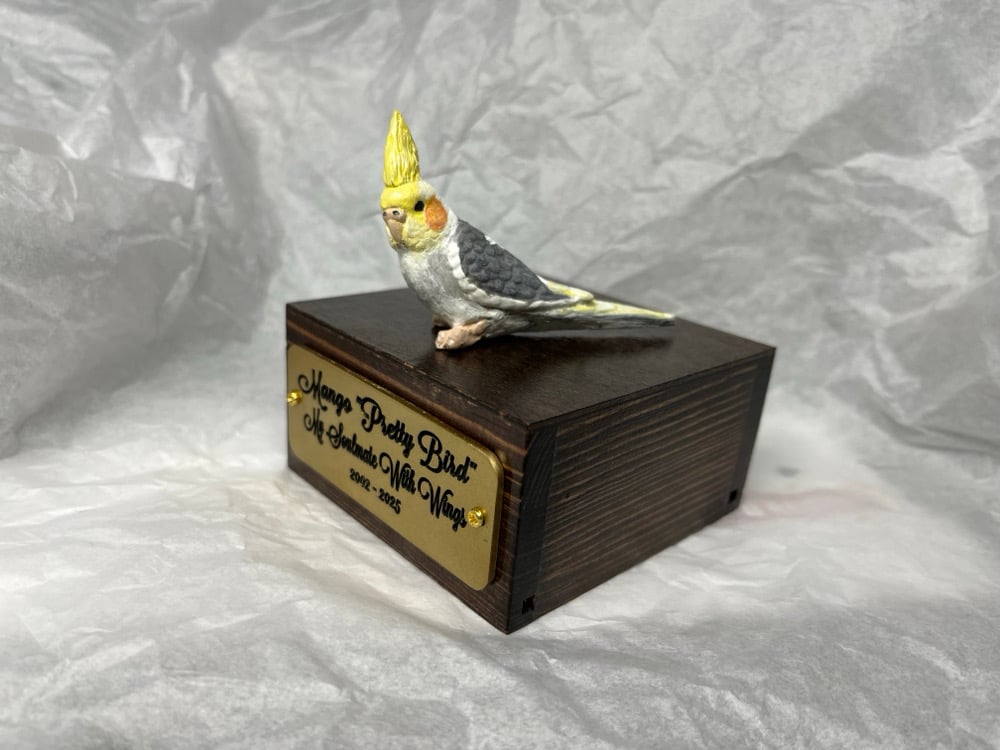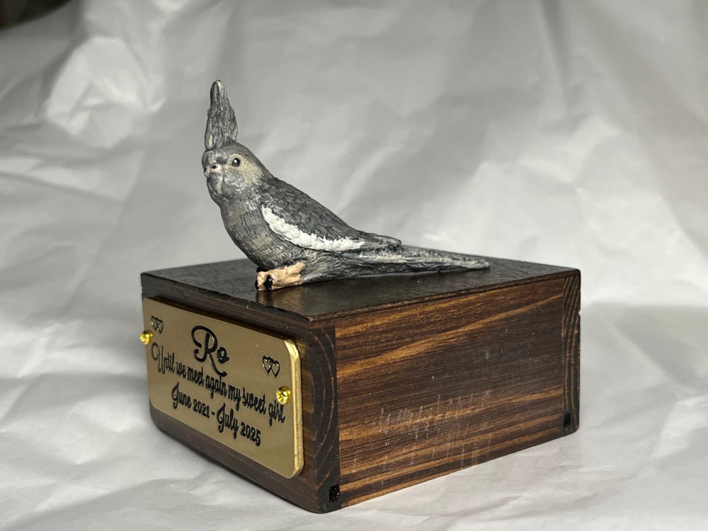 Custom Engraved Cockatiel Bird Mini Keepsake Urn Handpainted To Your Photo Pet Portrait