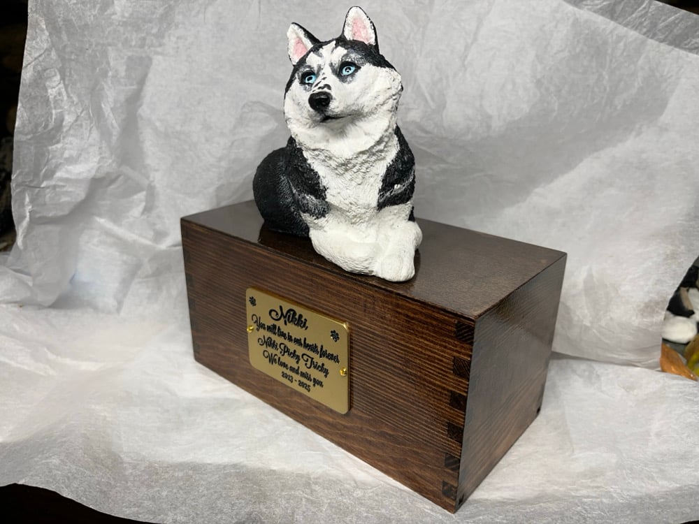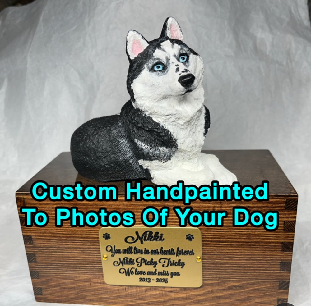 Custom Engraved Handpainted Siberian Husky Urn For Ashes Pet Portrait To Your Photos