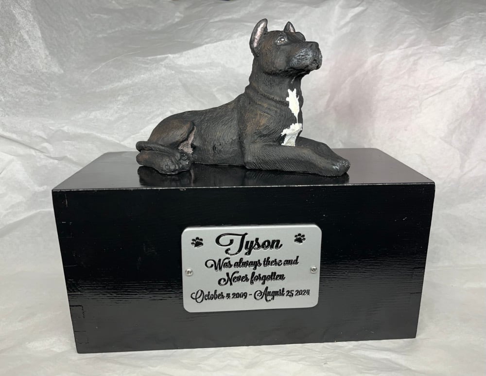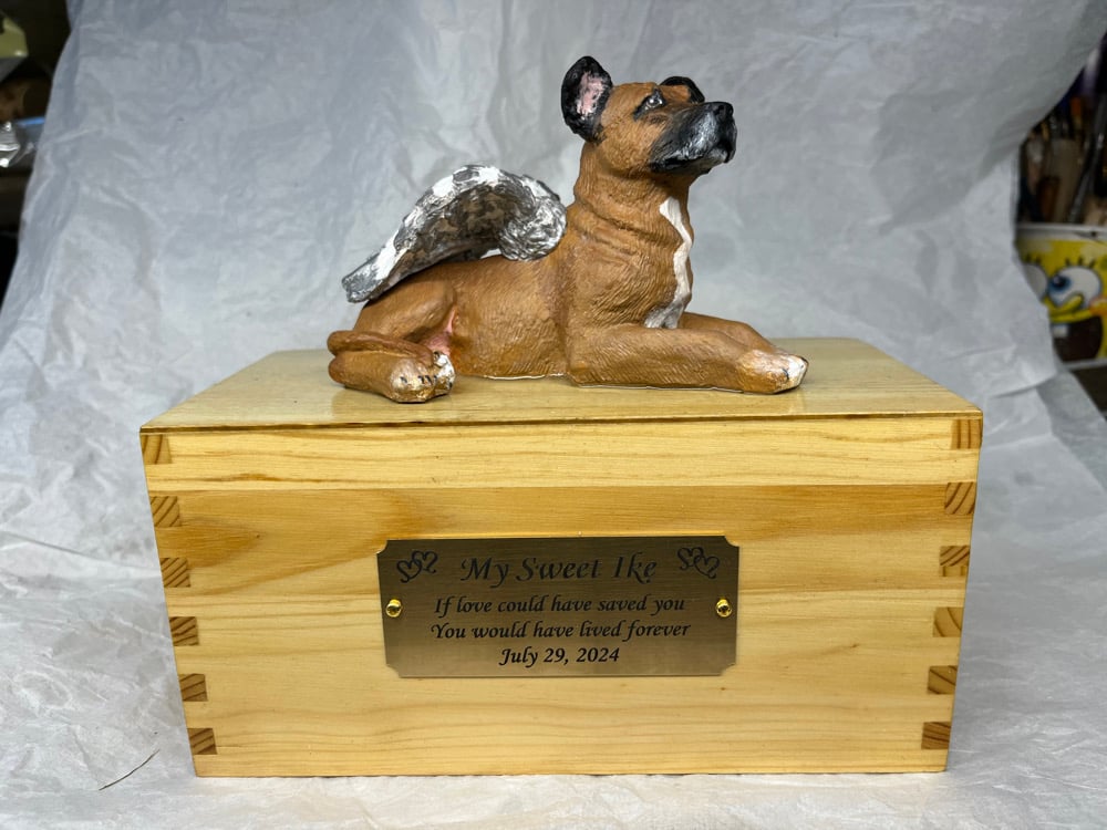 Complete urn - Includes custom sculpture, urn box, and custom engraved tag