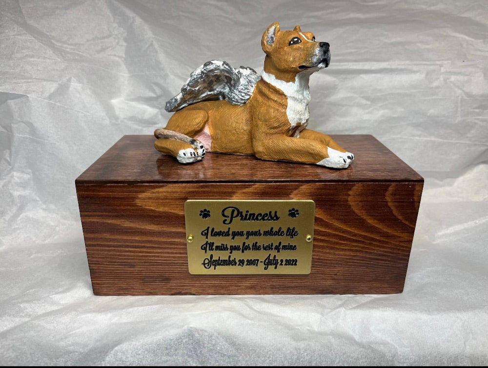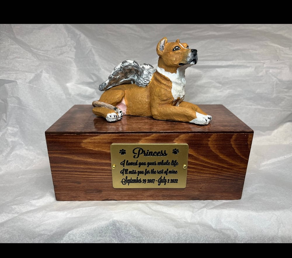 - 8x4 wood urn holds cremains of up to 90 lb pet