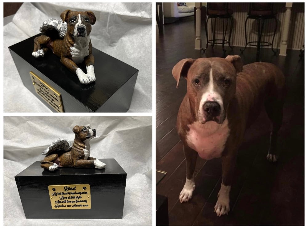 Handmade Custom Engraved Pit Bull Urn For Ashes Pet Portrait To Your Photos