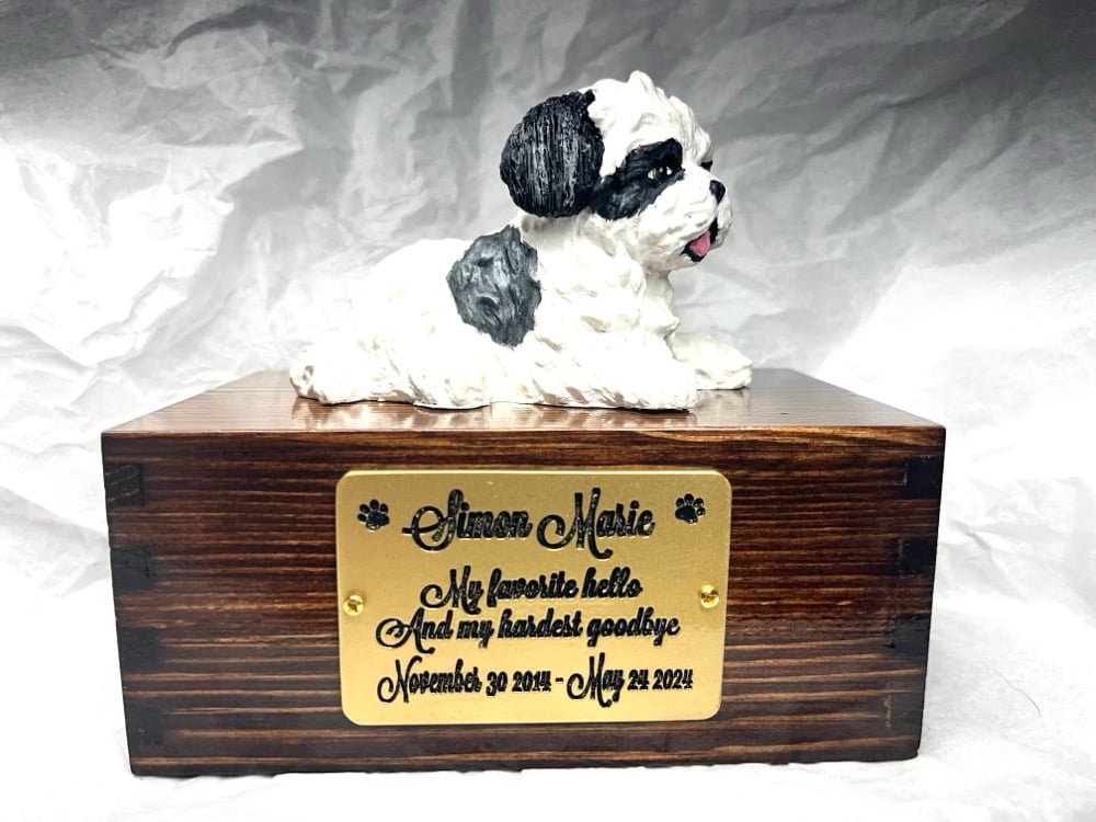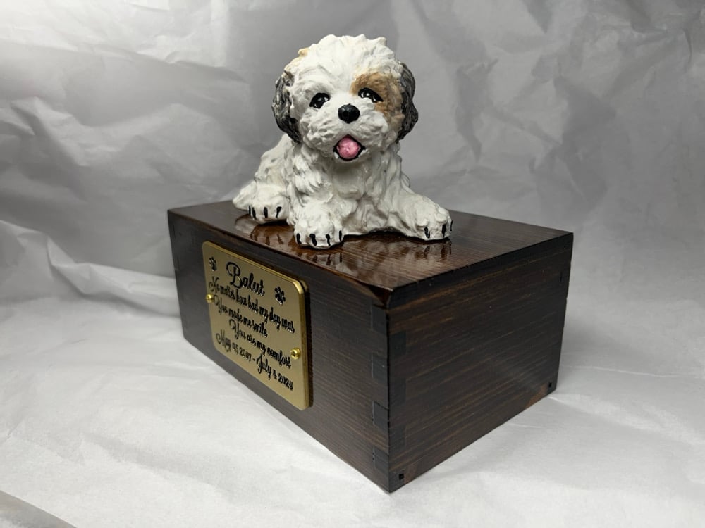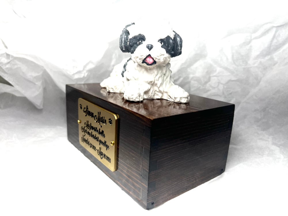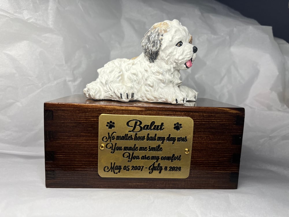 Custom Engraved Maltese Urn Pet Portrait Figurine To Your Dog's Photo