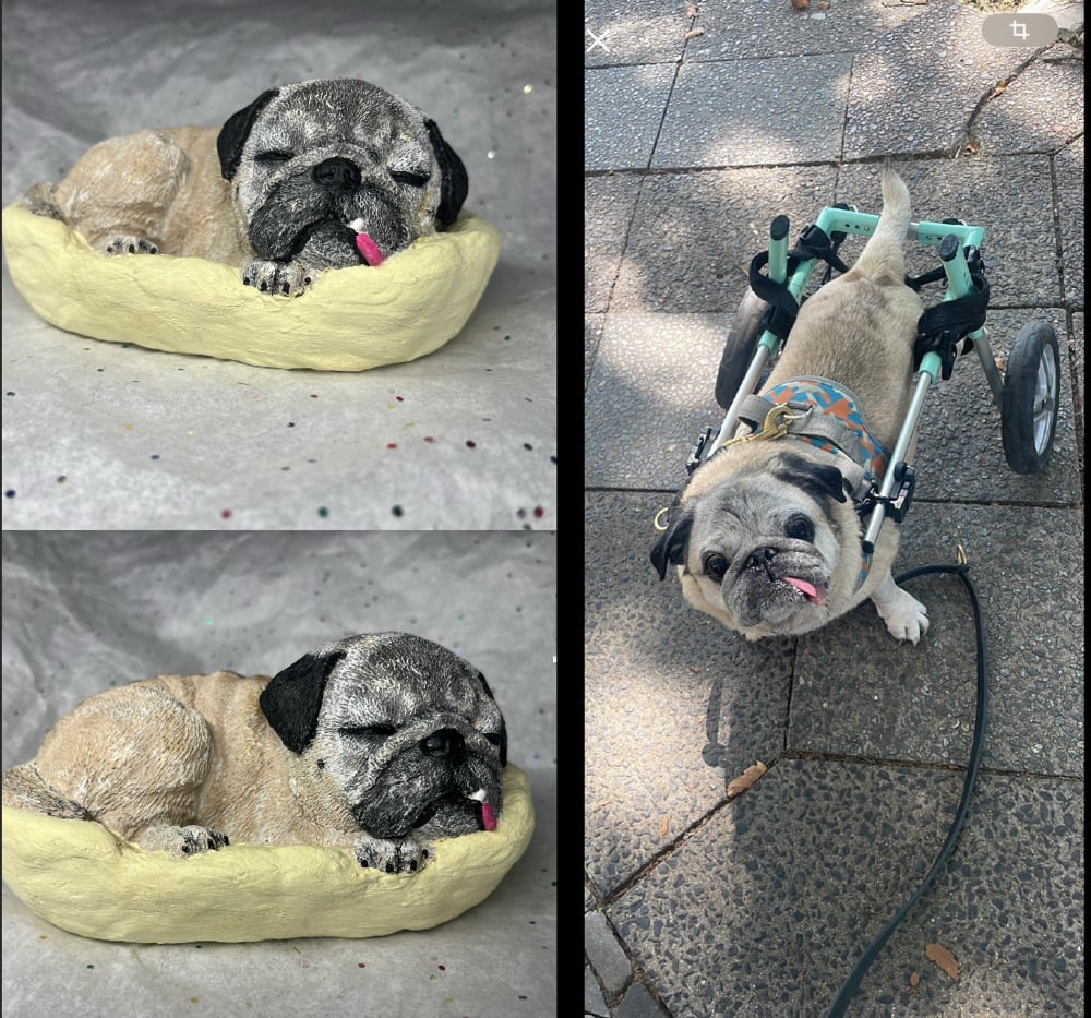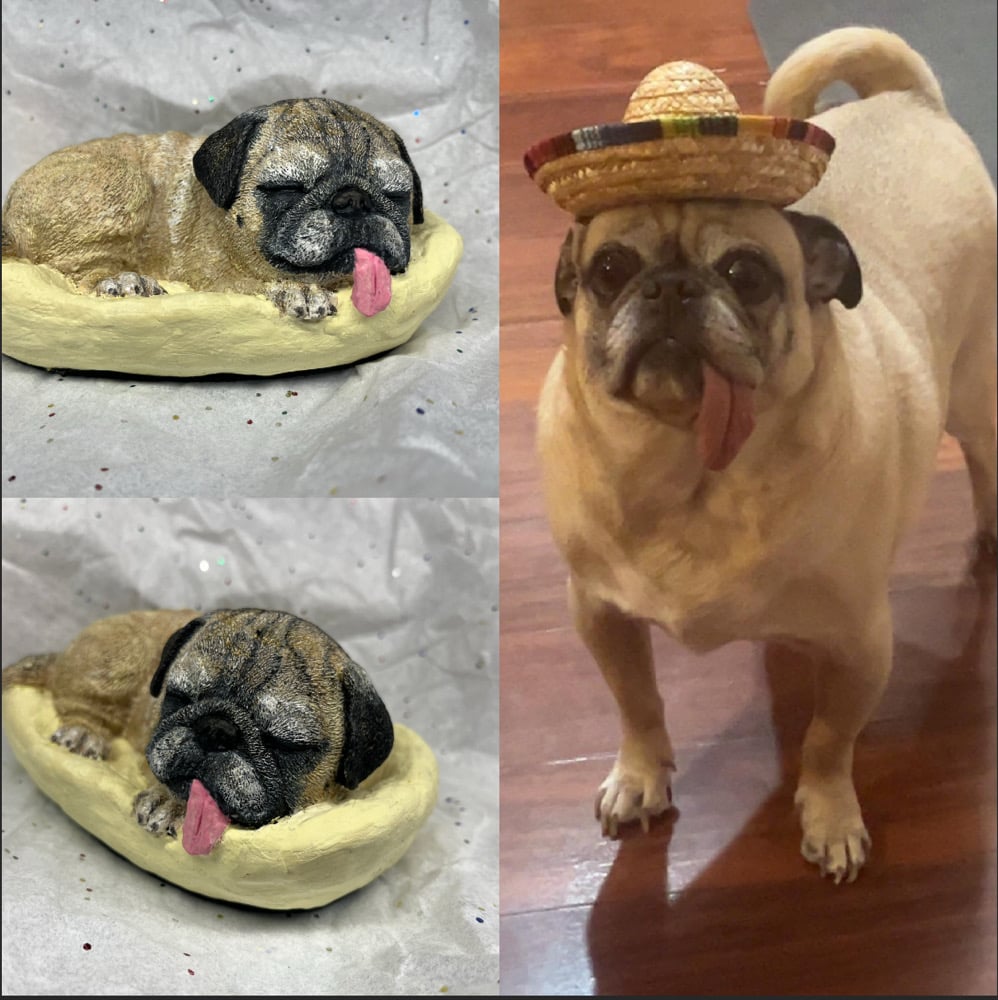 Pug Statue is handpainted in acrylics and sealed with a matte clear coat.