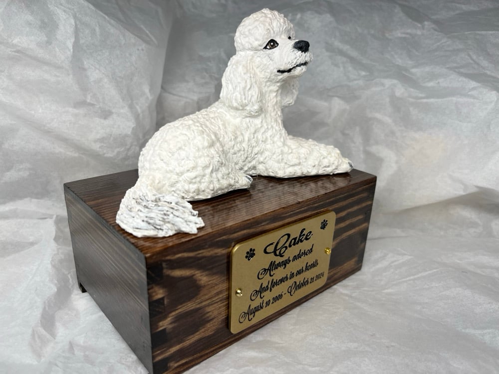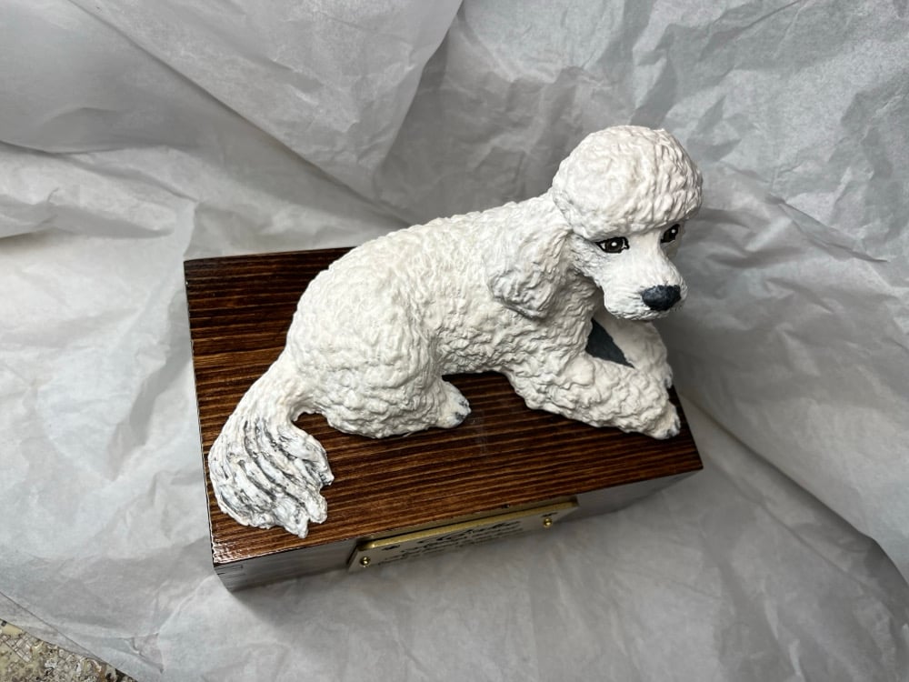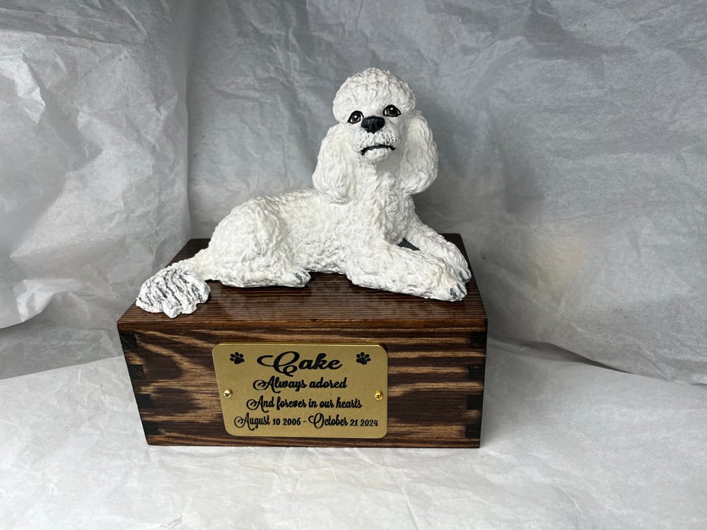 Custom Engraved White Poodle Urn Wings Angel Pet Portrait Cremation Ashes