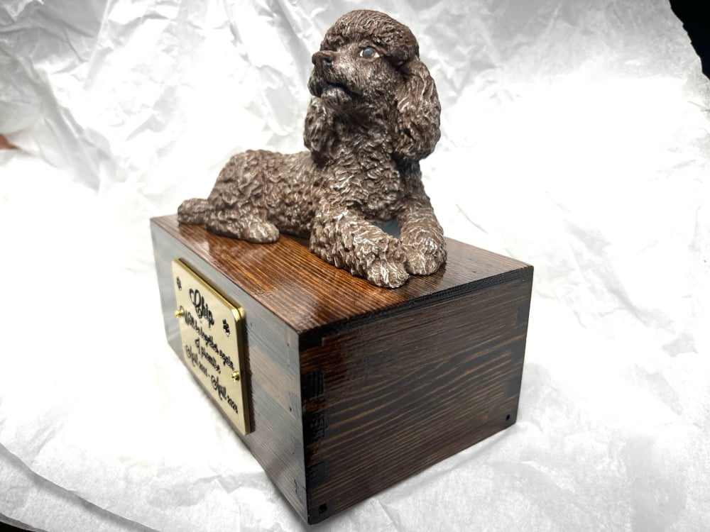 Complete urn - Includes custom sculpture, urn box, and custom engraved tag